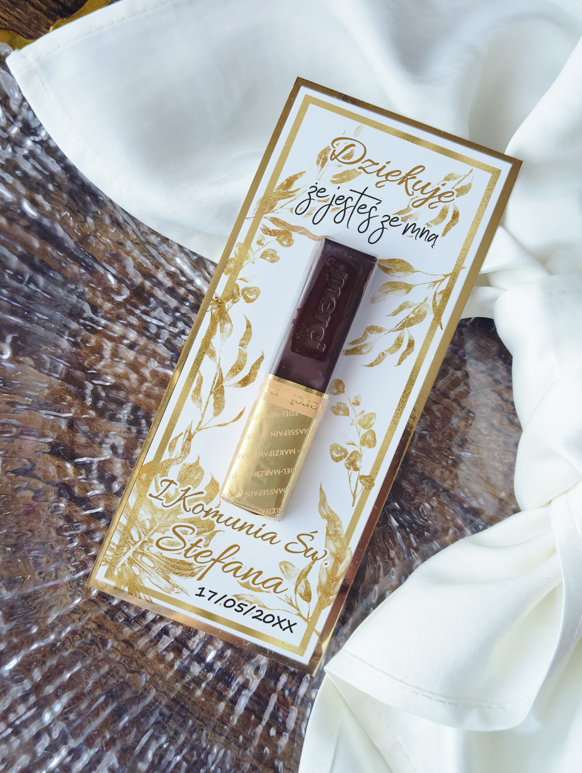 Eleganckie podziękowanie dla gości na Pierwszą Komunię Świętą z czekoladką Merci to subtelny i symboliczny upominek, który pozwala w piękny sposób podziękować bliskim za obecność w tym wyjątkowym dniu.