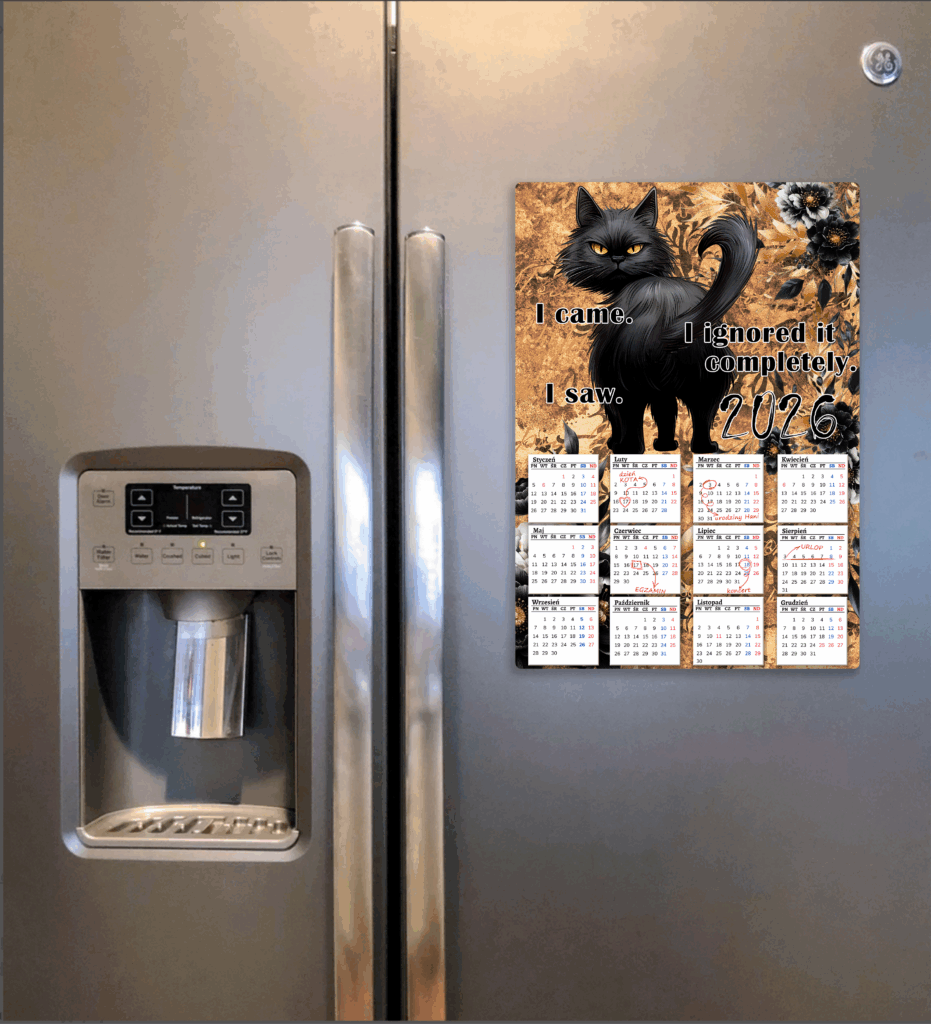 Wprowadź do swojego wnętrza odrobinę koloru i radości dzięki wyjątkowemu kalendarzowi 2026 z kotem.