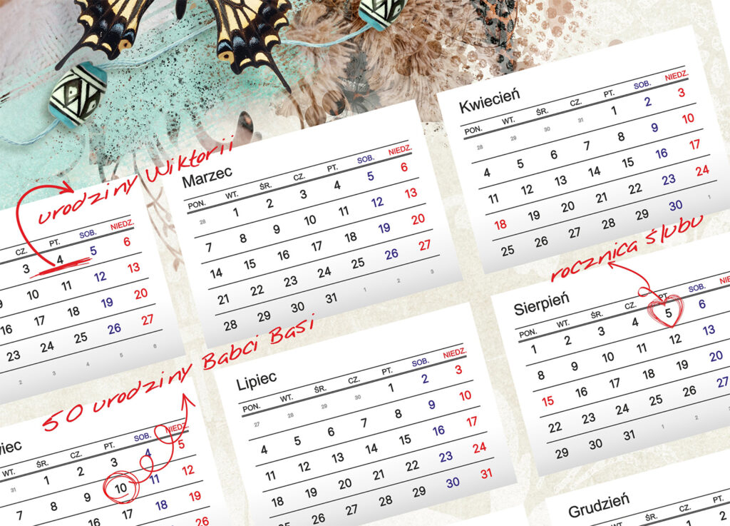 Każdą okazję możesz wyróżnić innym symbolem, dzięki czemu kalendarz będzie nie tylko praktyczny, ale również pełen emocji i znaczeń.
