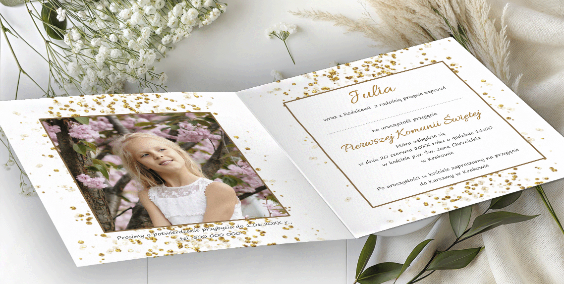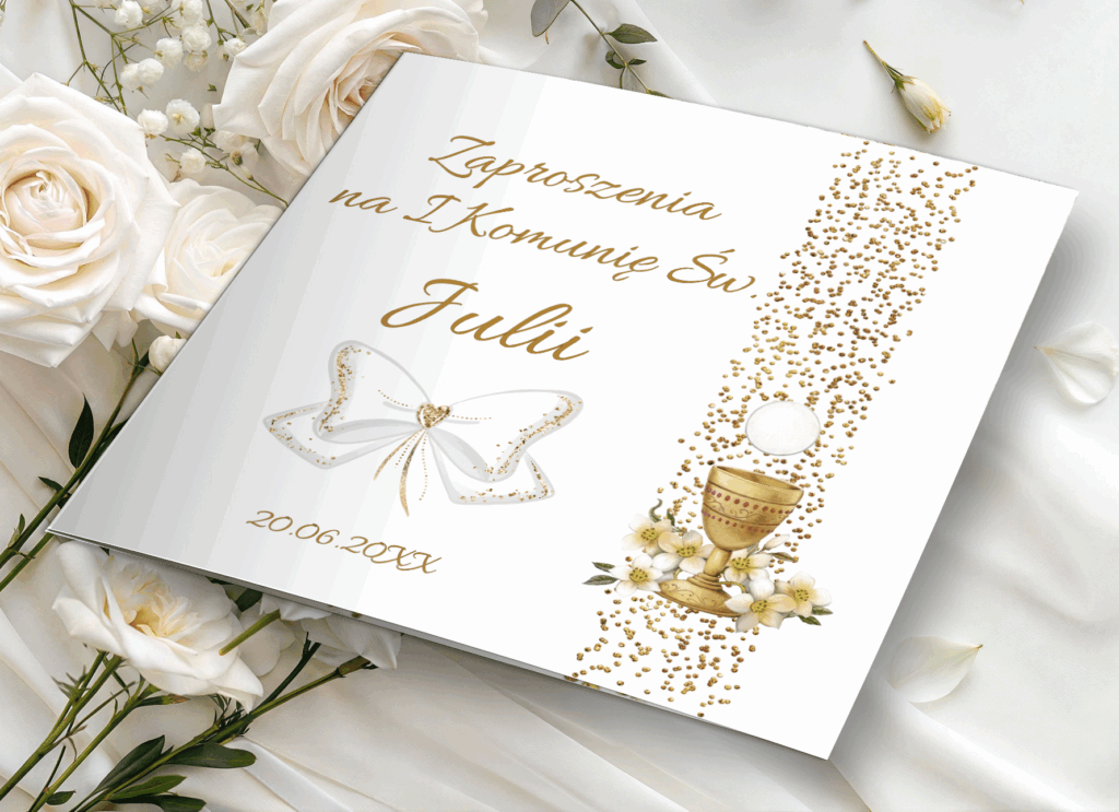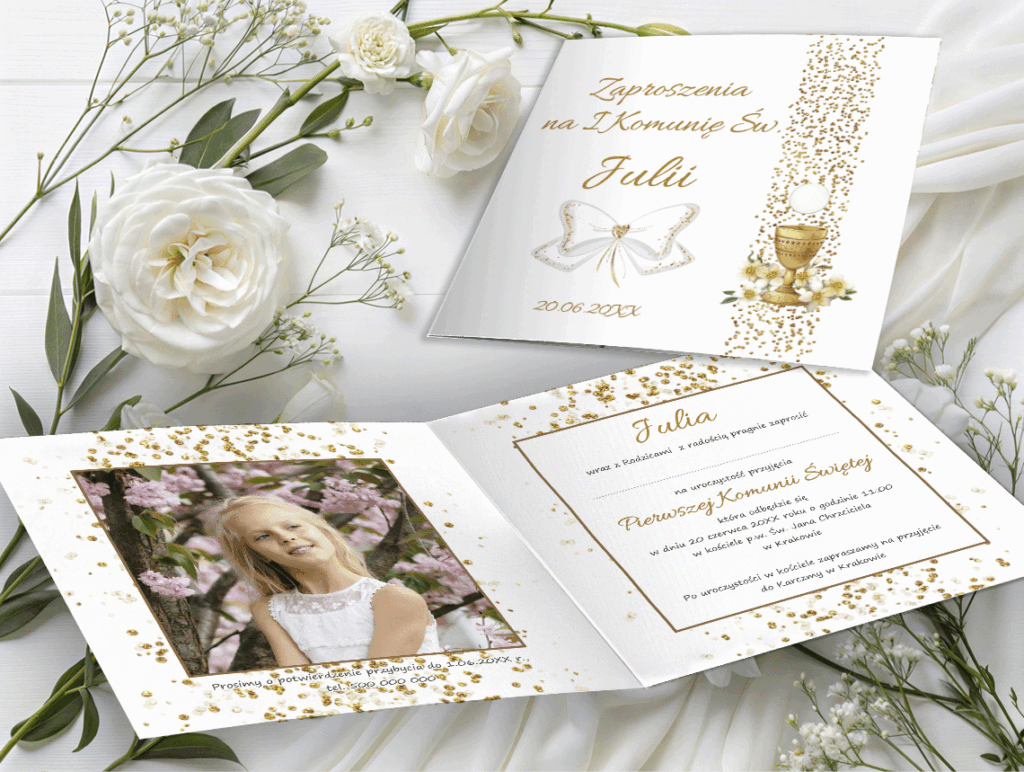 Zaproszenie na I Komunię Świętą ze zdjęciem – personalizowane