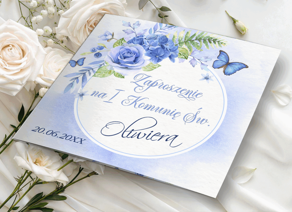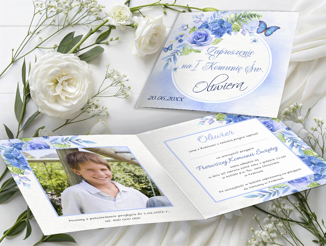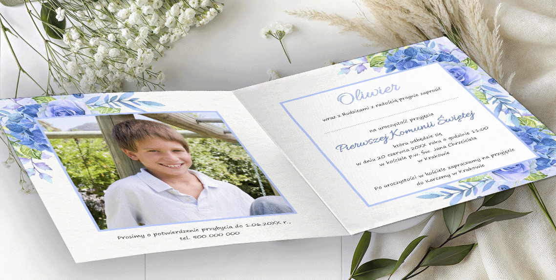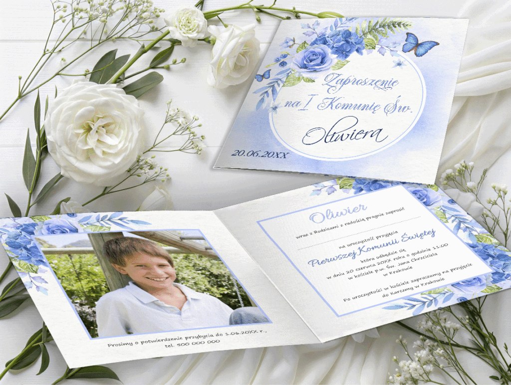 Zaproszenie na I Komunię Świętą ze zdjęciem – personalizowane
