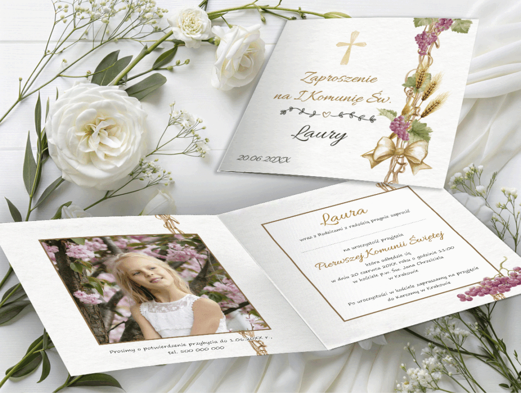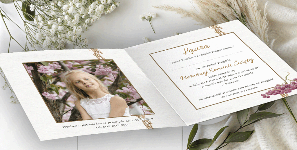 Zaproszenie na I Komunię Świętą ze zdjęciem – personalizowane