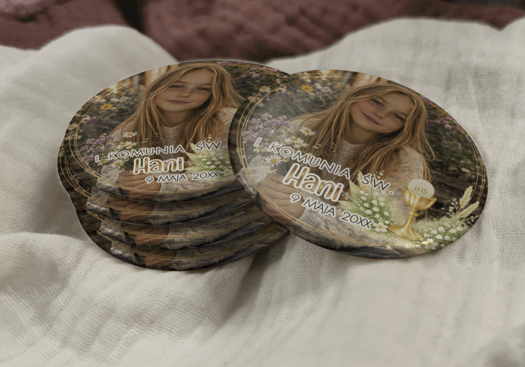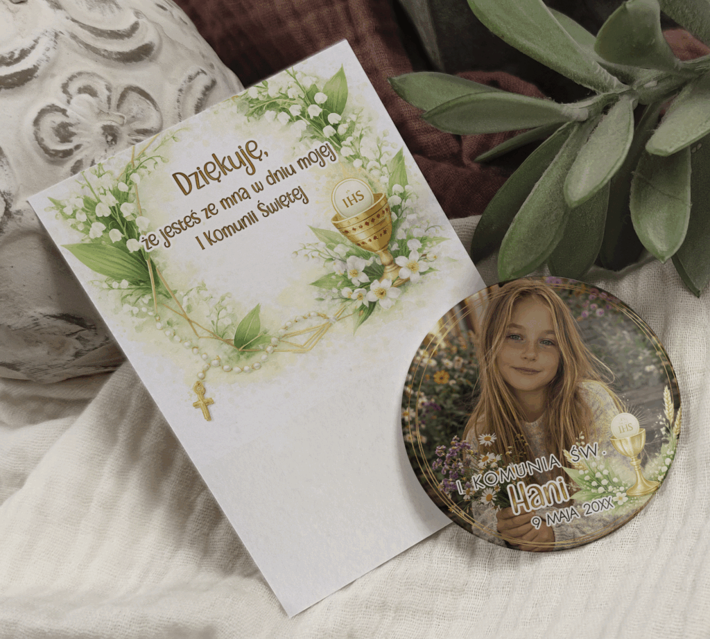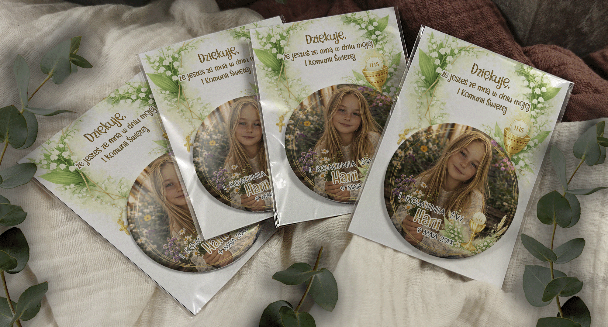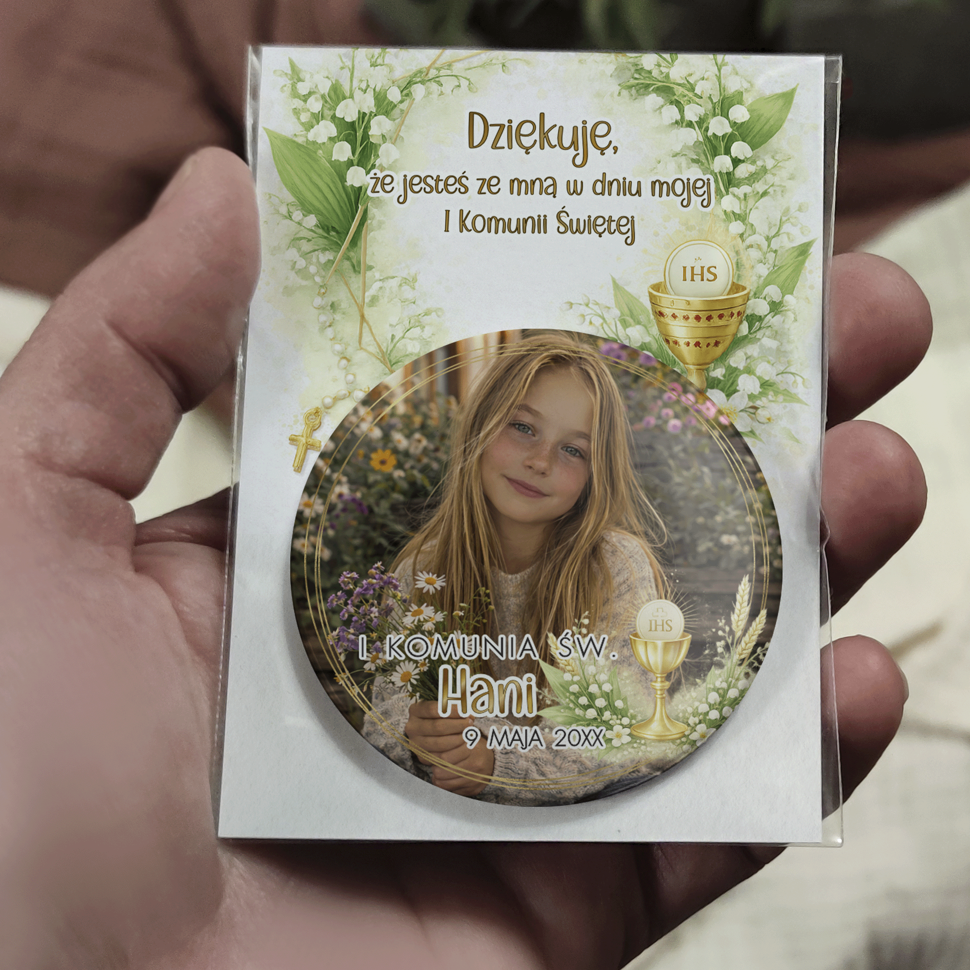 Personalizowany magnes komunijny ze zdjęciem – podziękowanie dla gości