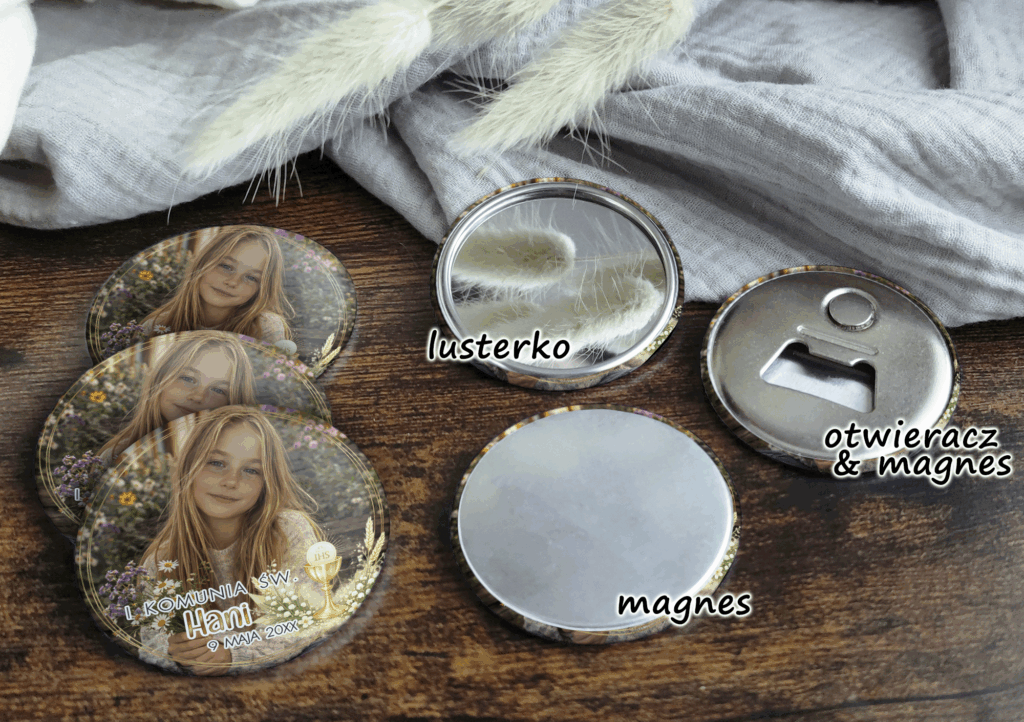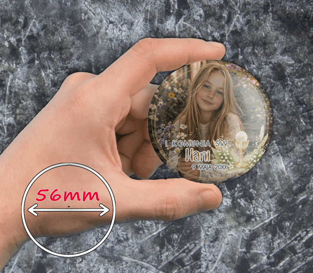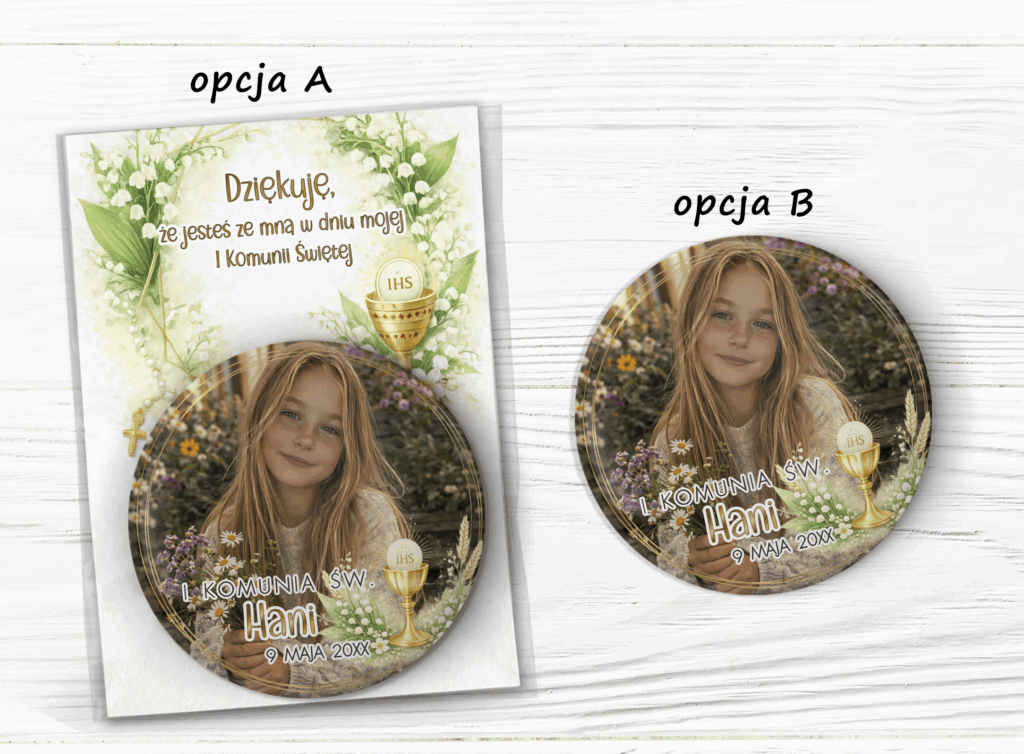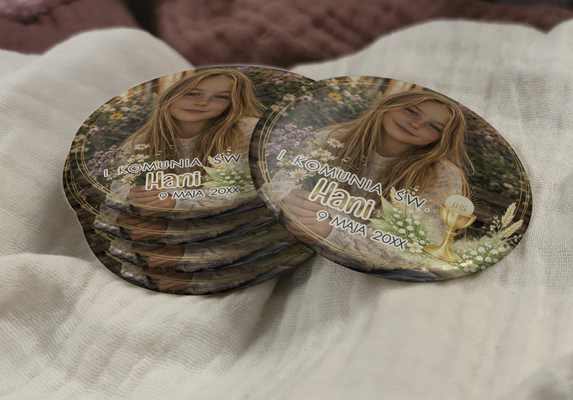 Personalizowany magnes komunijny ze zdjęciem – podziękowanie dla gości