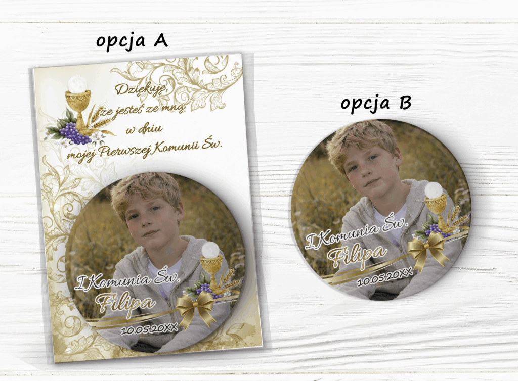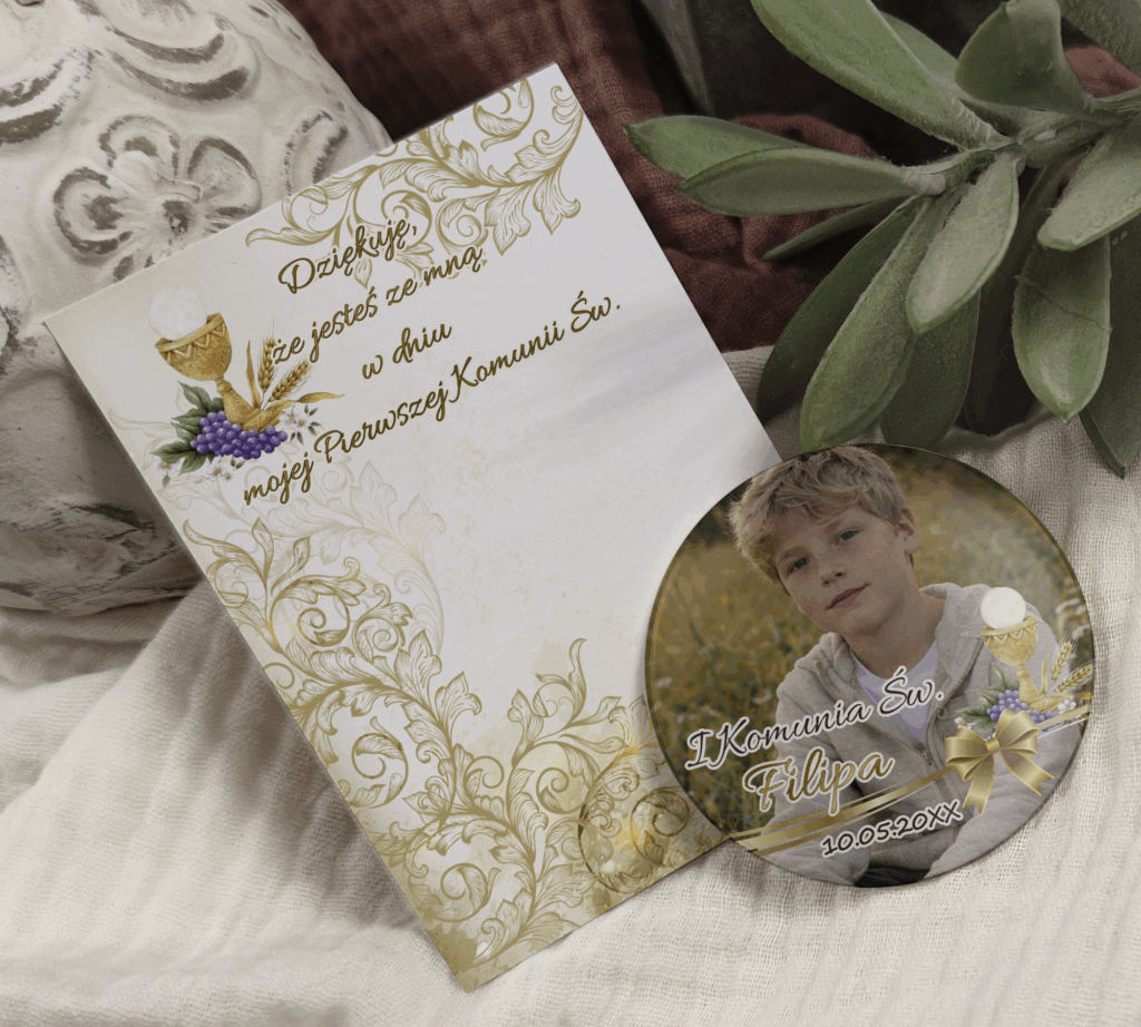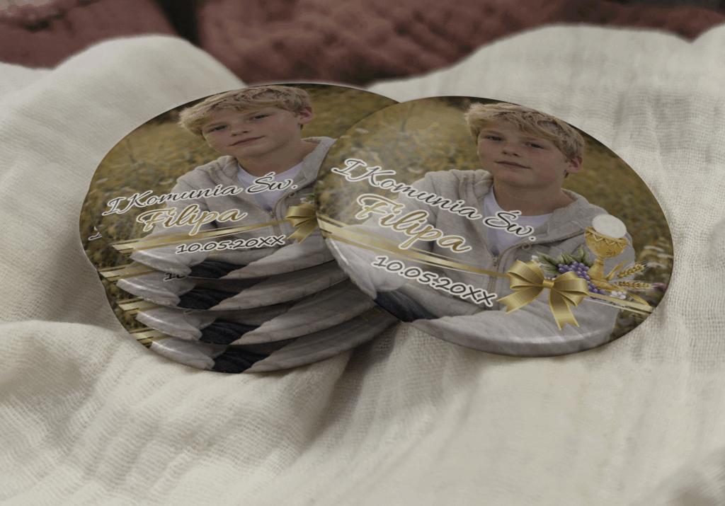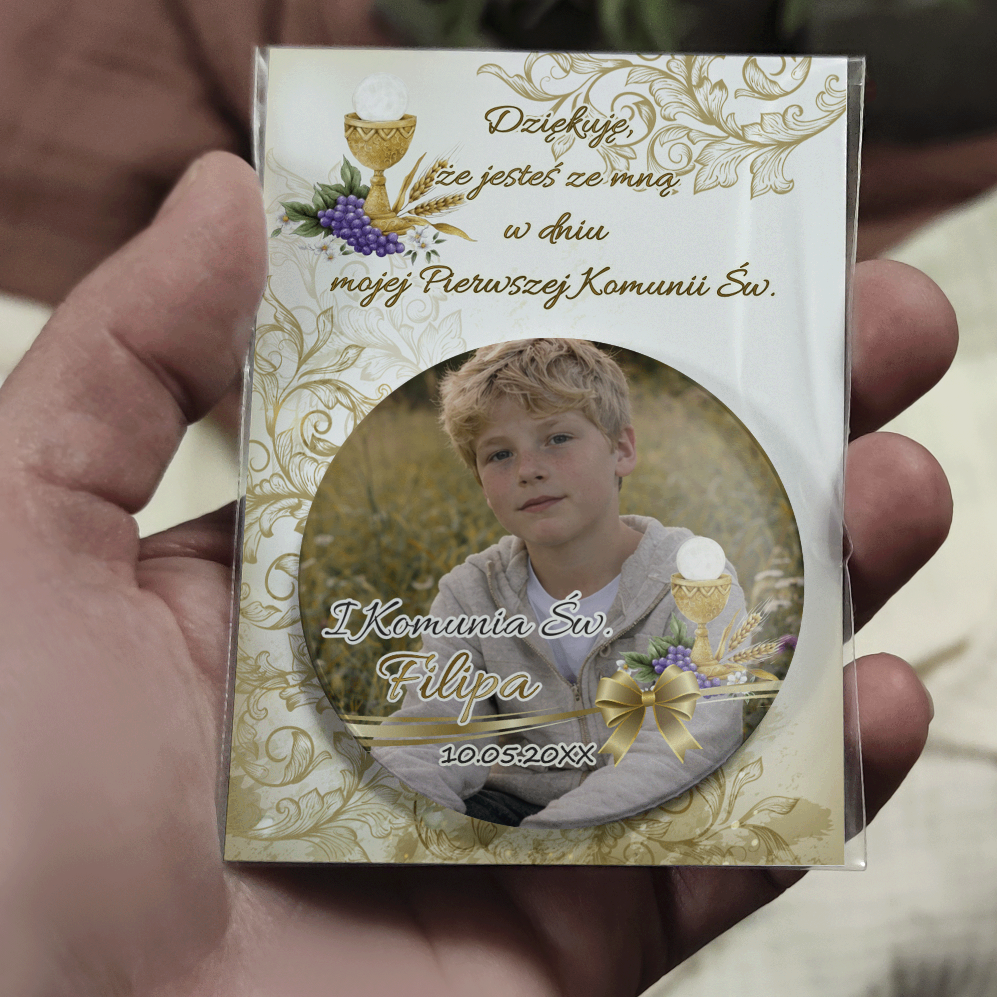 Personalizowany magnes komunijny ze zdjęciem – podziękowanie dla gości