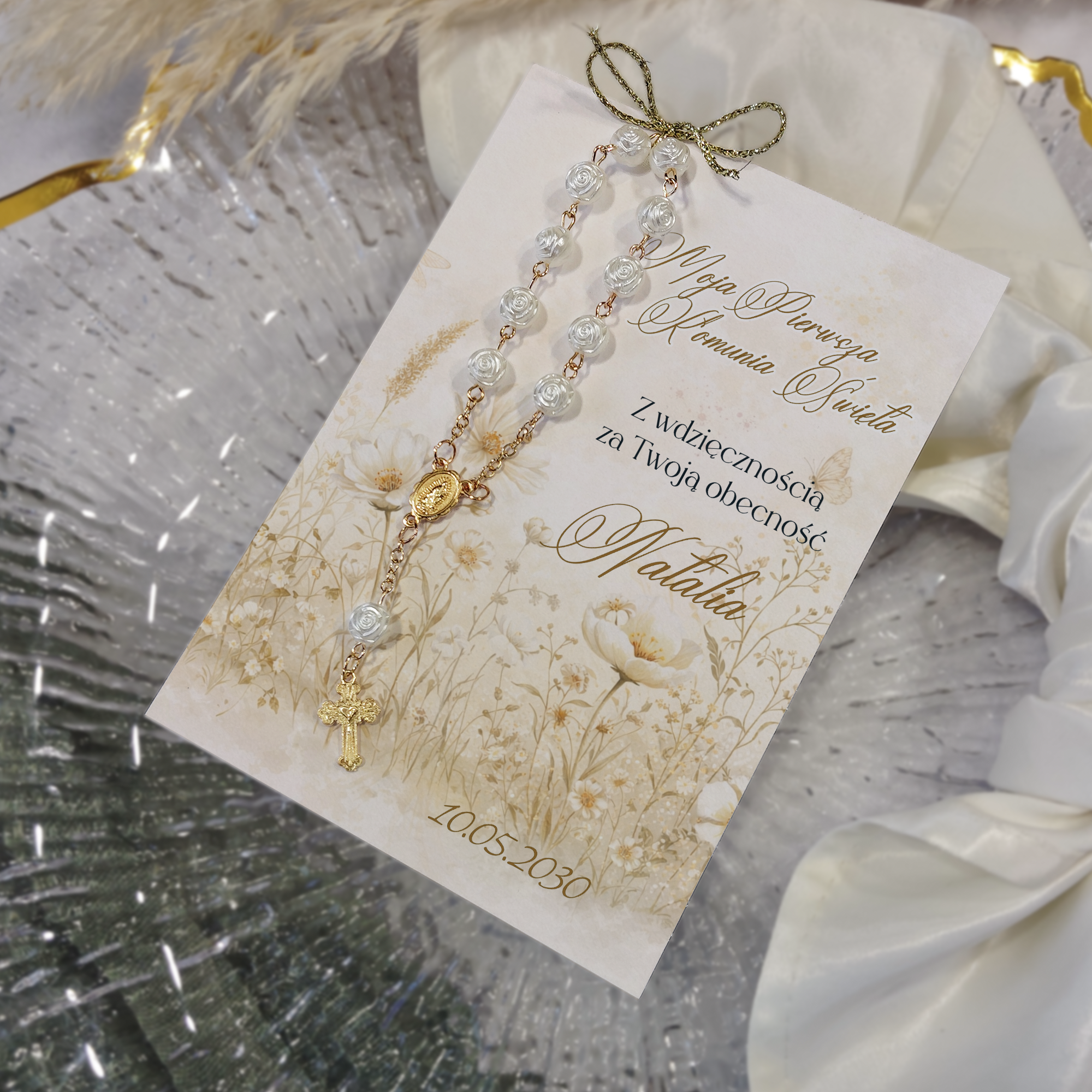 Podziękowanie komunijne z różańcem