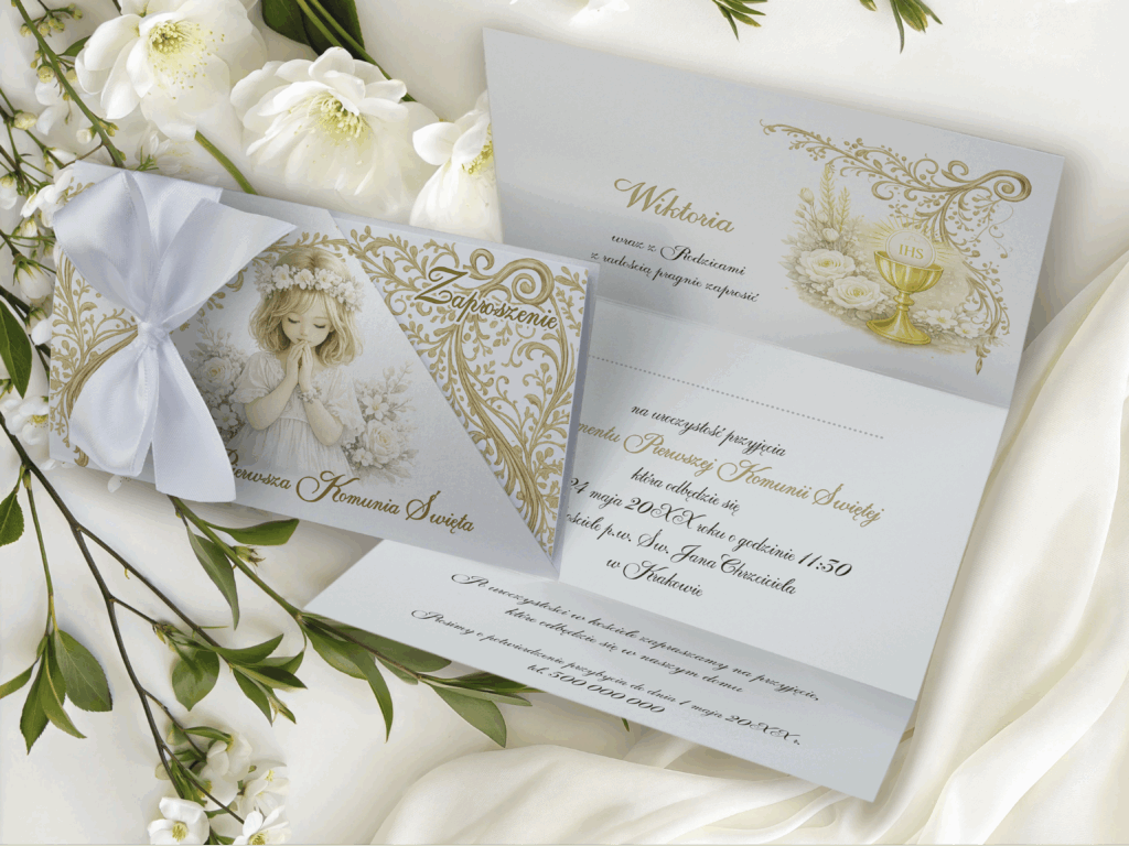 Zaproszenie na I Komunię Świętą w etui – personalizowane