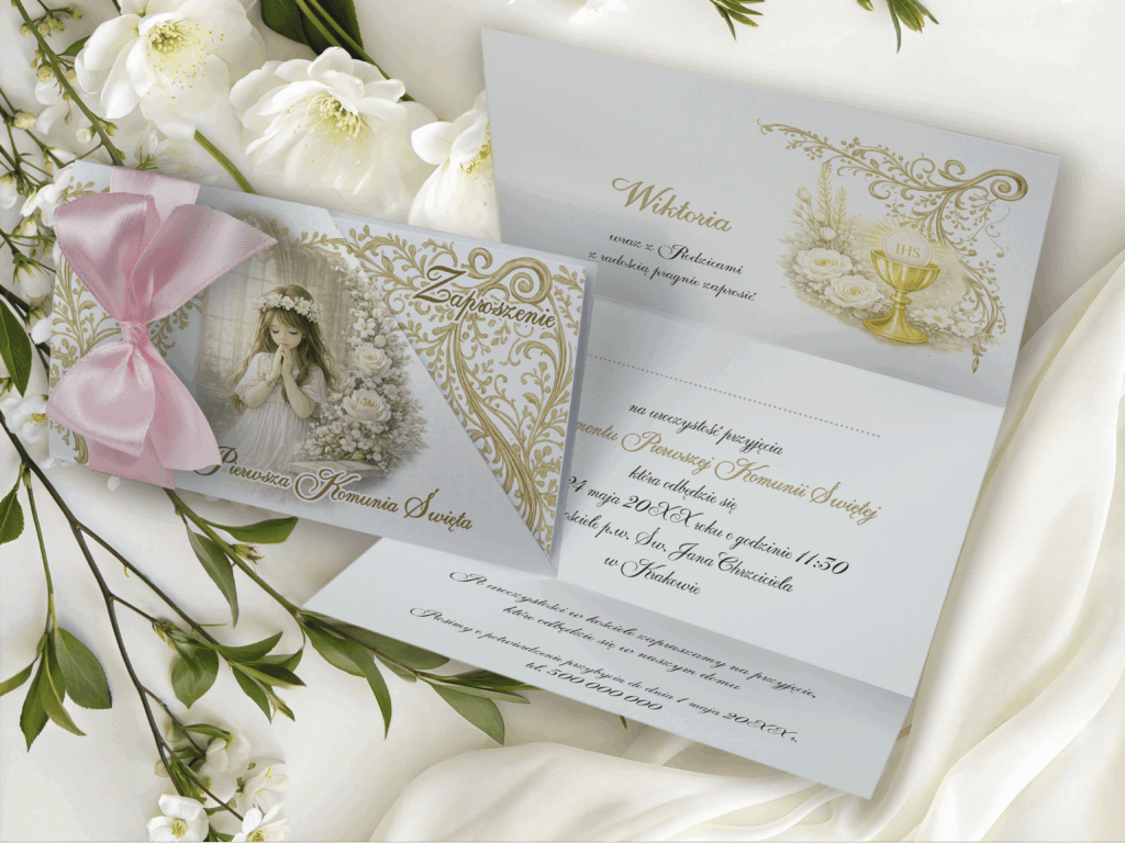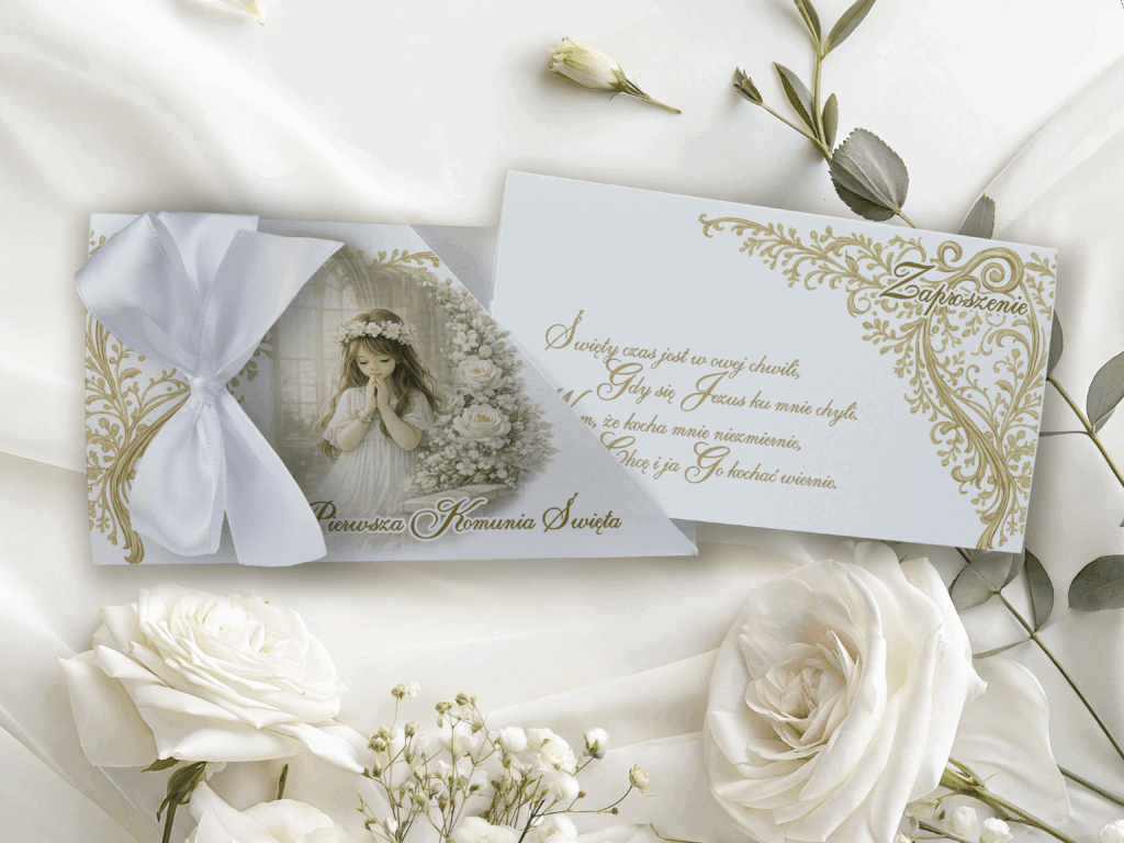 Zaproszenie na I Komunię Świętą w etui – personalizowane