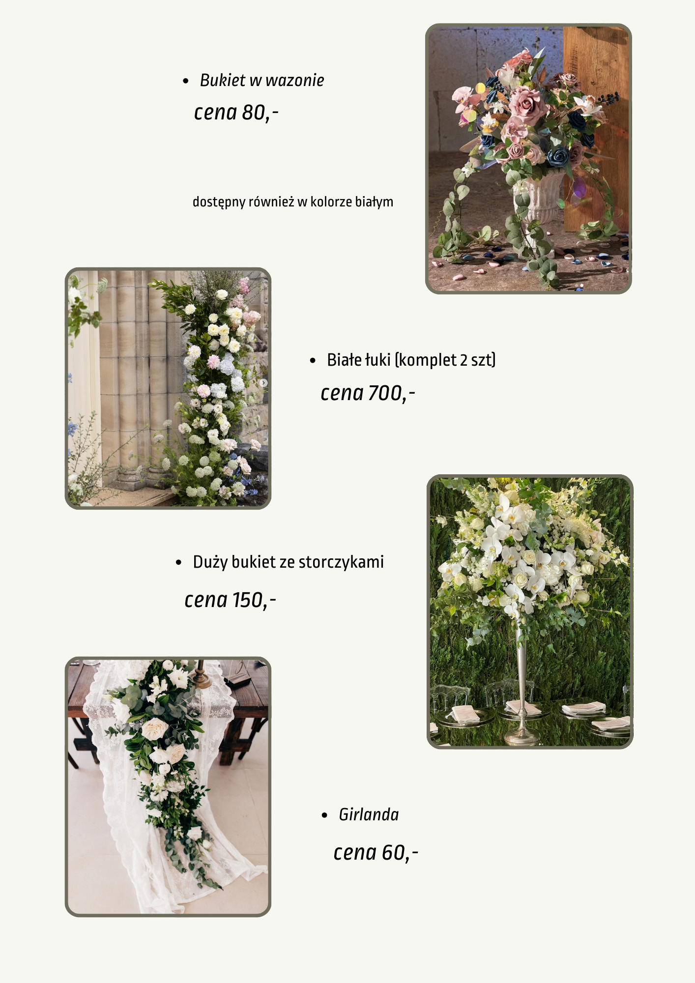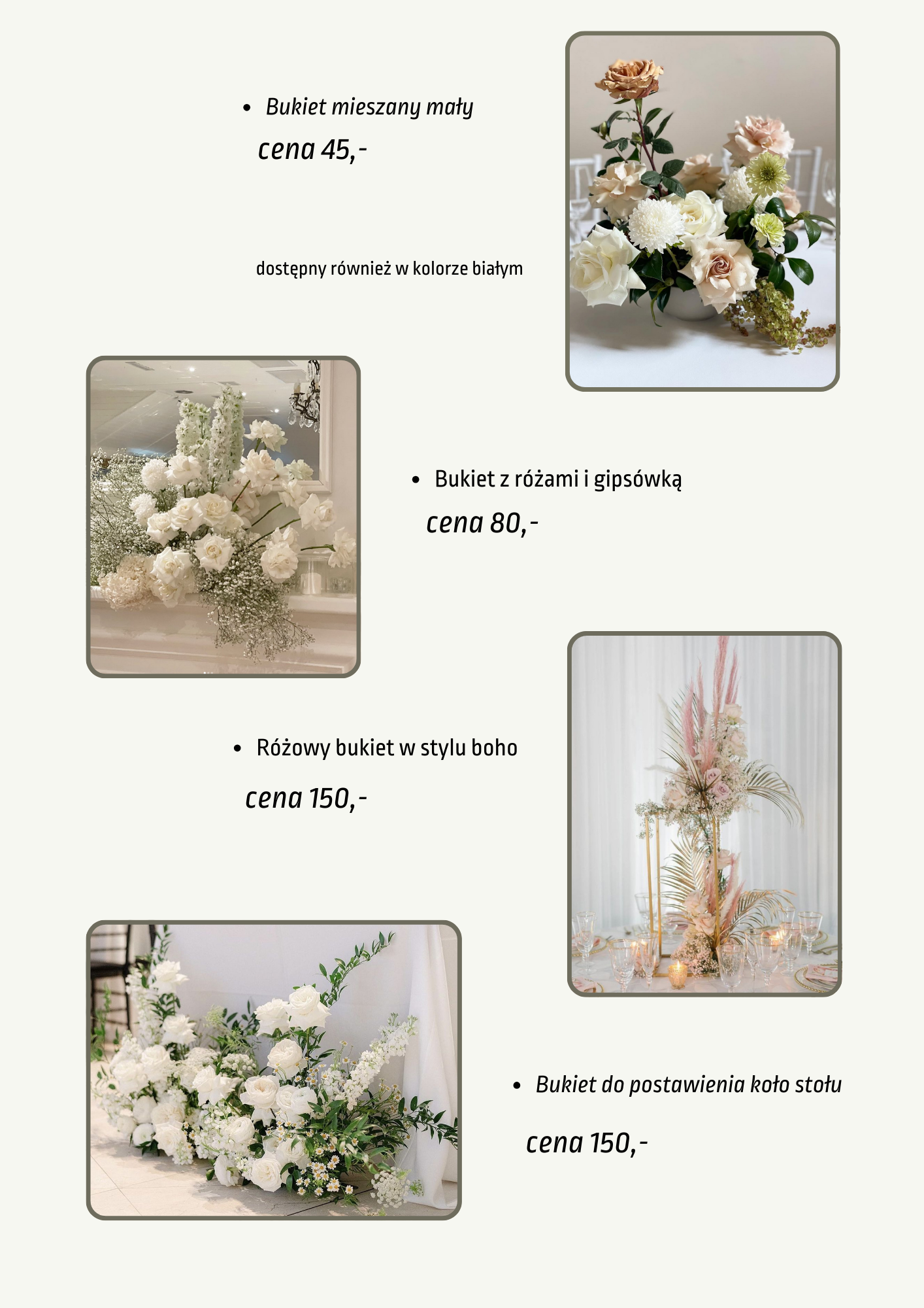 Określenie ostatecznej ceny bukietów wymaga indywidualnej konsultacji i określenia szczegółów.